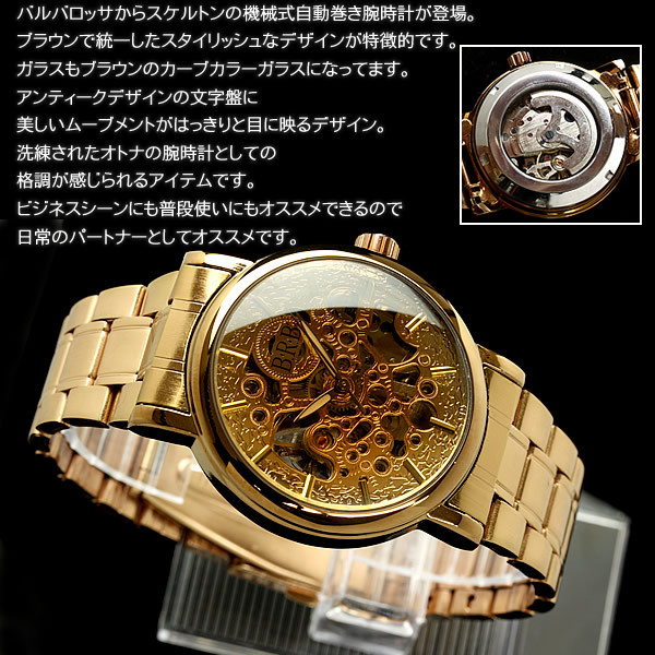 ○自動巻裏蓋スケルトン フルブラウン腕時計 2000円