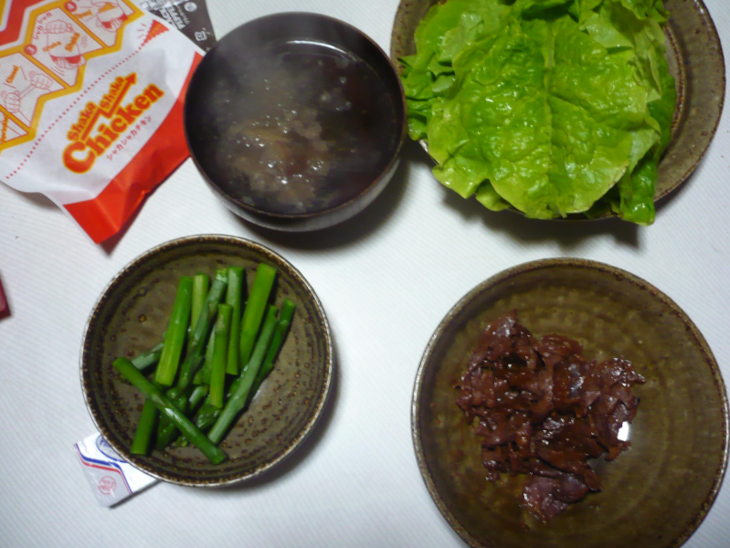 お昼が15時過ぎなのにしっかり食べたため夜、お腹がすかなかったのでお肉は残した。