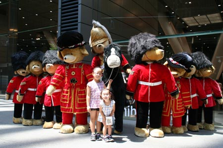 子供たちの後ろの兵隊さんたちはぬいぐるみです。 会場の入口の横に並んでいて、いっちばん最初に目に飛び込んできたベアたちです。 本当によくできていました。 家族連れの方々はみなさんここで写真撮影されていましたよ。