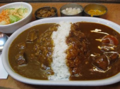 カレー専門店なんだけれども、 各種カレーか、なぜかパスタを2種類選べる大満足メニュー。 これにボリューム満点のサラダと、ドリンクがついてます。