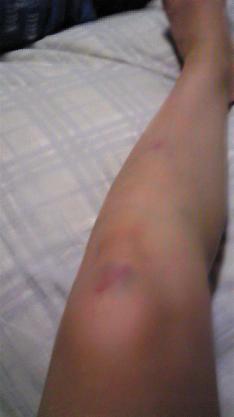 これは昨日のリレーでの名誉の負傷・・・ じゃなくて リレー終わった後に足がもつれてなんでもないところで 転んで打った青たん♪(爆!!)←恥ずかしい><