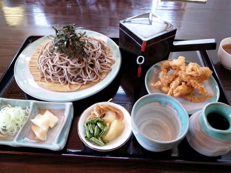 蕎麦が豪快に盛られてますね~!美味しそう。 食べ物は地域の色が出ますから、旅の醍醐味ですね♪