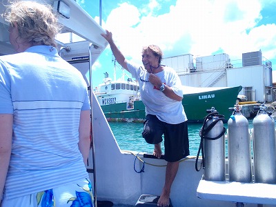 客は別ショップから年配のご婦人1名、体験ダイビング5名で出船。