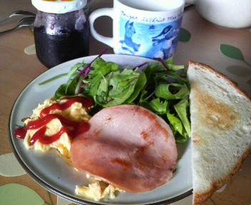 | 休日の朝食はもう、お決まりです。 目玉焼きだったり、スクランブルエッグだったり