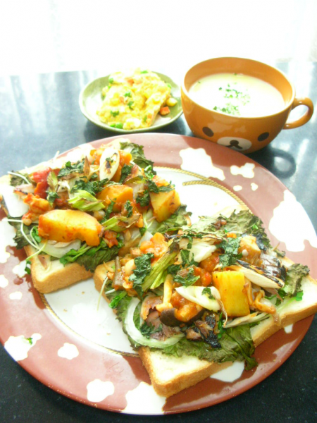 にゃは☆ チョロッと出てる舌がきゃわゆい♪ 犬とか猫のちょこっとだけ出してる舌って、つい触ってみたくなっちゃうんだぉねー。 生ハムみたいな質感で、美味しそう・・ (こらこら) 真ん中の写真のオープンサンド、めっちゃ美味しそう~!! ガッツリとボリュームあるのにヘルシーな感じがええですなぁ♪
