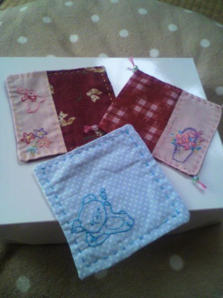 顏合わせ 本当に無事に済んで。。よかったです。 今度は結婚式のことで色々と忙しくなりそう(*^_^*) シトちゃんのパッチワークに比べたら、全然だけど。。。 でも、自分で作ったものって愛着がわきますよね。