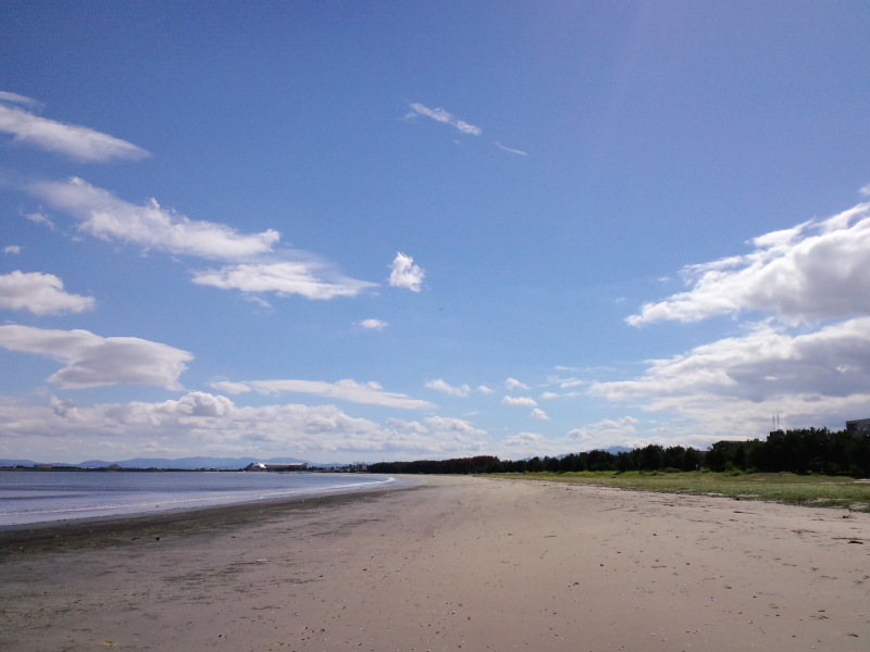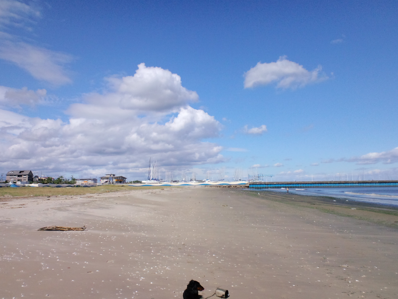 山へ行くつもりが 西の空が暗くなってきたので 毎度毎度の近場の海でRONとかけっこしました。