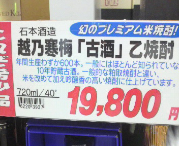 ε=ε=ε=ミ( ノ_ _)ノ=3 ズコ-!! 写真だけかい? 焼酎、あるんだね。 これは高くて、手が出ない・・・。