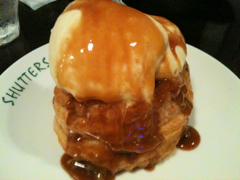 お後のアップルパイアラモードは、温かいアップルパイと冷たいバニラ…、 そしてキャラメルソースのコラボレーション。 オイラの握りこぶし2個分はあるデカさも、ペロリと食べちゃうほど美味…。 ソースは、ブルーベリー・ラズベリー・キャラメル・チョコレート ・メープルシロップ・シナモンから選べるぞ~。