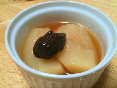 朝飯は、日清のチキンラーメンでございますし、(画像1) デザートは、カミサン力作のリンゴのコンポートも、ガッツリいただきました。(画像2)