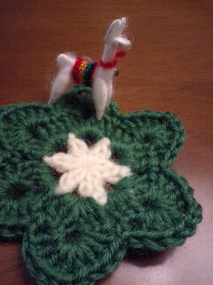 シーズンなので、ちょっとクリスマスっぽいコースターを編んだ。 カップを置くと、真ん中の白い部分は見えなくなっちまうんだがね。 ウチんちのミラバケッソくんと。