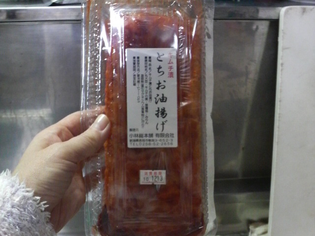 これは、キムチ味ですが、やっぱり、オーソドックスな油揚げの方がいいかなぁ~ 鶏の皮の味噌漬けは甘い味噌がまぶしてあって、おいしかったですよ♪ 昔ながらのお肉屋さんも、変わったものが売っていて、おもしろいですね(^^)v