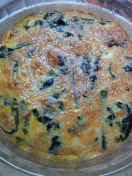 (°▽°;) エッ!? 簡単ですよ~♪ 昨日は、ほうれん草とベーコン、トマトに...。 好きな具を入れて、作れます。 卵が期限内に使い切れない !! な~んてときに、オススメです。 (苦笑)