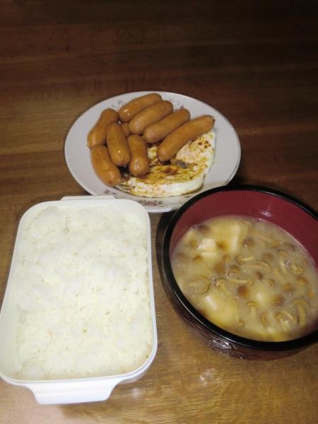 にゃんだーーーーー!!このソーセージの量は!!贅沢だどーーーーー!!! 我家はお弁当に一本づつなり・・^^; しかも旦那にこっそり食われないよう、封印してさらに隠してあるのだー (ベーコンも同じく・・・笑) 野菜が足りない!と思ったら青汁って・・二人前って・・・( ̄▽ ̄;)アハハ…