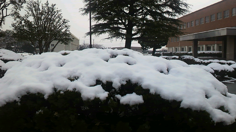 雪は、地面には積もって二けど、木や自動車には 積もってましたね。