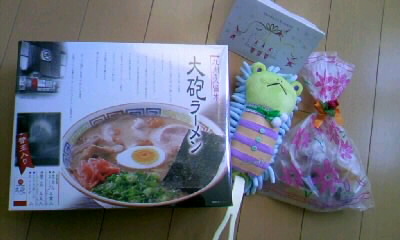 替え玉付きの博多らー♪イェイ ご馳走さまでしたぁ♪(〃∇〃) 食べる前に記念写真をパチリ。(笑) カエルぐっつ、超可愛い~♡