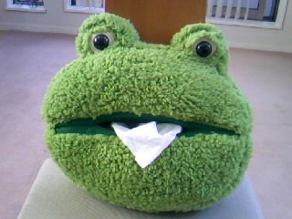 カエルでかッ!口からティッシュをぺっ♪(爆) 君の居場所は私のベットの横に決定だ!( ´艸`)ムププ