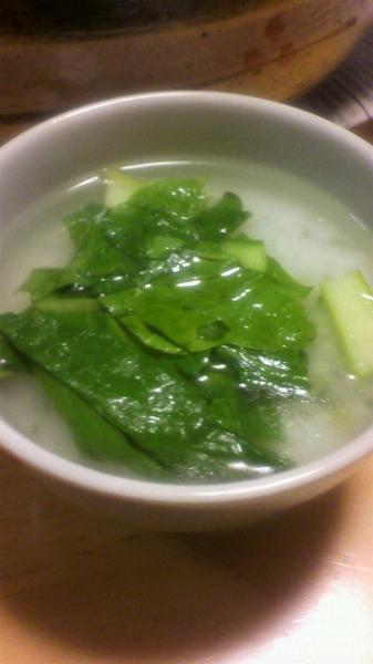 いつもはお粥やらないんだけど、今年は娘の体調も悪いため、作ってみました。 昼間のウチに土鍋にお米を浸し、仕事から帰ってからお粥をつくり、もうひとつの鍋に鶏のスープを作り、 和風と中華の二種類にしました。 中華は最後にごま油を少し垂らしたかんじで、でも、ちょっと味が薄かったので、ほんだしを入れたら美味しかった^^; おかずはお正月の残り物を全部並べ、ヘルシ~&エコなお食事!(^^)!