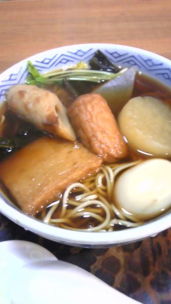 かけそばに、おでんが乗っかっているだけの、なんのひねりもない一杯。 でも、けっこうおなかいっぱいになりました。 これはこれで満足。