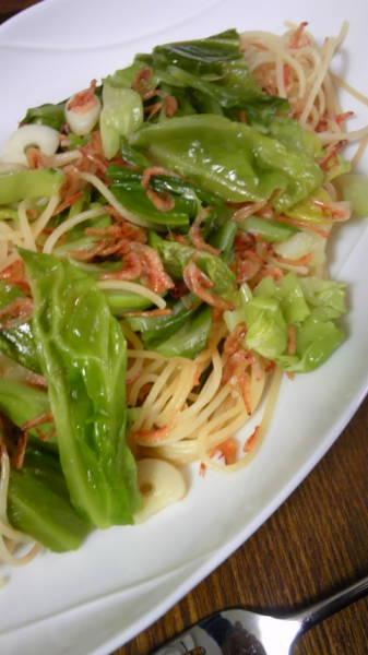食材を無駄にしないで、しっかり食べよう。 食べられない人がいるからこそ。 ということで、冷蔵庫の中にあった生ゴミ寸前のキャベツと桜海老で、「春色ペペロンチーノ」を作りました。 世の中混乱してますが、まだまだ寒い日が続きますが、春は着実にやってきています。 壮絶な北国の地にも、春はやってくるのです。 あたたかく平和な春が、一日も早く東北に訪れることを願いながら食べました。