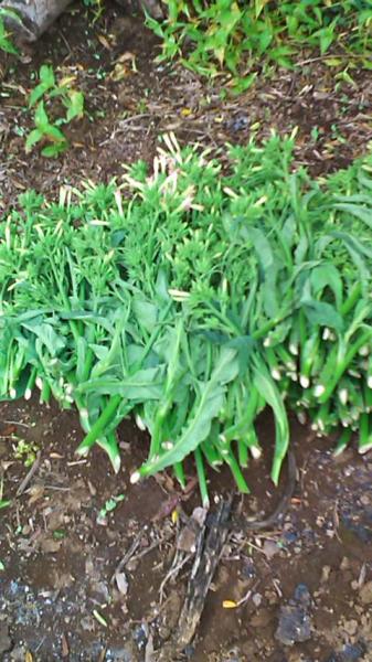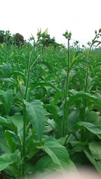 葉たばこです~ 心止・・・葉っぱに栄養を送るため、専用の鎌で花を切り落とします。勿論手作業です。 花は使いようが無いので廃棄です。