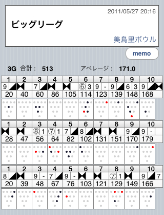 足を痛めたのでジョギングはしばらくお休み。 と言うことでボーリングネタを・・・ しかし、スコアはシケている・・・ 今日から梅雨入りなんだってねぇ・・・ 道理で・・・ ------------------------------------------------------------ 今年の勝敗累計:147戦18勝115敗14分 5月の勝敗累計:27戦03勝22敗02分 4月の勝敗累計:30戦04勝23敗03分 3月の勝敗累計:31戦03勝24敗04分 2月の勝敗累計:28戦03勝23敗02分 1月の勝敗累計:31戦05勝23敗03分 ------------------------------------------------------------