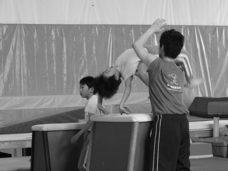 マット運動で、チョッと技の難易度があがって、 前転系から バク転系も追加されました。 まだ初めてなんで、補助があってもダメダメなんやけどねw