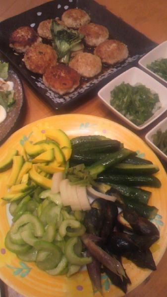 ナスは色が変わるからね・・みょうばん?とか入れるとそのまんま鮮やかな紫だと聞きますが♪ 胡瓜もちょっと前まで安かったのに、また値があがってきましたねーw 帰宅してから水分とりまくりーのきこたんです。で、今もエアコン入れてないです。 PCしながら汗が足を流れてます・・お風呂入ったのにぃ・・(;;)w