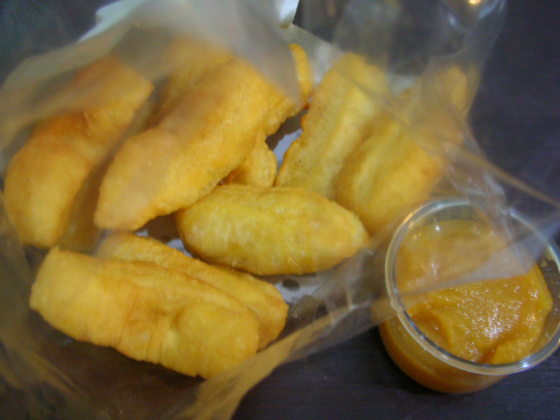 <写真2> 疑惑の揚げドーナツ店で買ったドーナツ。食べた後は何故だかいつもとっても元気になり眠気も冴え、そして翌日もその翌日もつい買い求めに走っていた。 付け合わせの甘味に病みつきになる薬物(例えばアップ系で常習癖がつくタイプの)が入っているんじゃ?と睨んでいた私。 以前、マリファナ好きのアメリカンな友人を連れていったら、私がそれを話す前に「これ?なんか入ってない?ちょっとザラザラしてるし」って言ってた。 2年振りに買いに走ったけど、元気にはならなくなった。もちろん美味しいんですけどね。