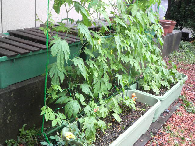 プランターの横にいるのはくまさんですか? そうせなら、プロフ写真の人形ってどうですか?