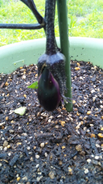初収穫おめーーーー!!! この茄子はちっちゃいのかな????
