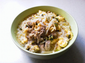ジョーさんのUPした写真のトラップに見事につかまりました。(笑) 朝からラーメンを食べてみました。 サッポロ一番の塩ラーメンに残り物のおかずをのせて頂きました。 ・・・満足です。(^^)