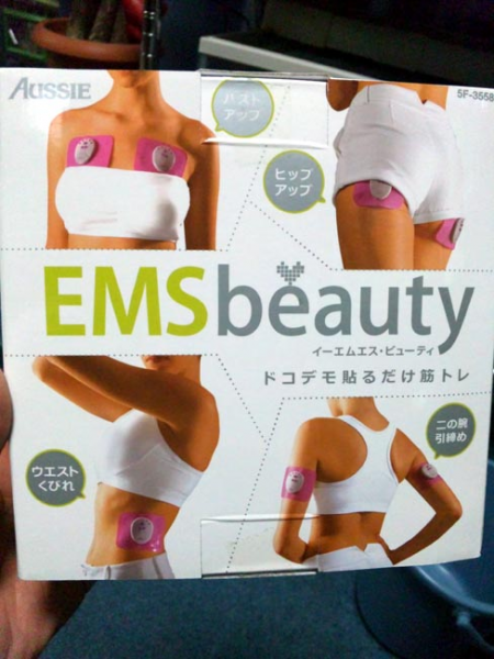 そのネットの情報の中の一つにあったんですが、 一時期流行った(今でも?)EMSを使ってみたらかなり症状が治まってきたという例がありました。 EMS(Electrical Muscle Stimulation)って、アレですよ、アレ。 腹に巻いたり二の腕や太ももに巻いたりして、微弱な電流を流して筋肉動かして、楽して引き締めるとか痩せるとか っていう謳い文句のヤツ。 今でもフィットネス関係のグッズのコーナーに行くと必ず見かけますね。 びっちり割れた男性の腹やすっきりと引き締まった女性の腹に巻いてる写真がパッケージの表紙になってたりしますね(^^;