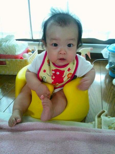 5ヶ月半になった孫娘。 「首が座ったら使えるイス」とやらを買ってみたようです。