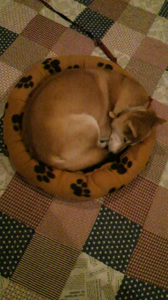 これでもうソファーでよだれ垂らして寝ないでよねっ!ヾ(*`Д´*)ノ 犬はうつ伏せで寝るからよだれ垂れちゃうのかしらん・・・?仰向けに寝ればいいのに・・(笑)