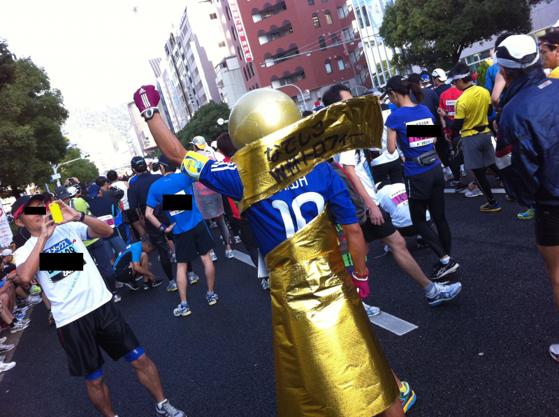 でぇ、これぐらいのペースのサブフォー狙いの 両腕に時計をしたスキンヘッドのいかにもの男性を発見w とりあえず、この男性について行く事にしました(ロックオン) 色々景色や沿道の声援を楽しみながら、わりと快適です。