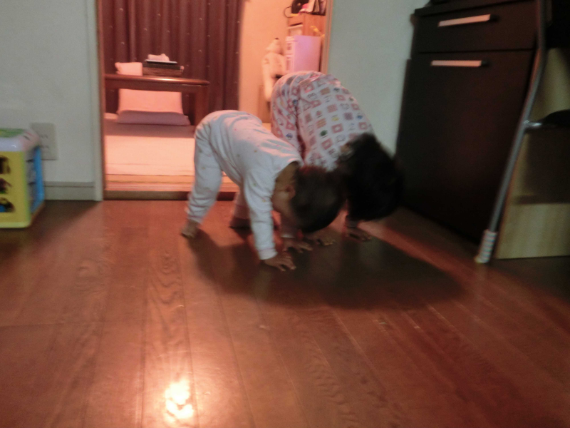 あっあっあーーーーーーーーーーーーーっ! さっちゃんが「ママに赤ちゃんできたよポーズ」をしてる(笑) ははは~~~ ないないっ!