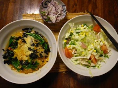 だっしょー?!美味かったよ! 蕎麦に乗っているとろろ、新宿の立ち食いそば屋で卵を混ぜて乗っけてあったのを見て感激して!以来まねてます。 これだと❤とろろが汁に沈まない!お試しあれ~❤