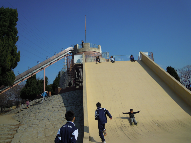 お父さんな1日だったねー。^^ この滑り台、写真の中の男の子もやってるけど 下から駆け上がるとかは やらなかった?