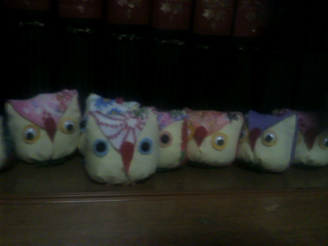 温泉友達と、手芸作りに励む ばあちゃん。 本人いわく「ボケ防止」とか。 その割には根詰めてやってるけど。 最近は①のフェルトのねずみに凝ってます。 ②のふくろうは、いったいいくつ作ったのかしら?(^v^)