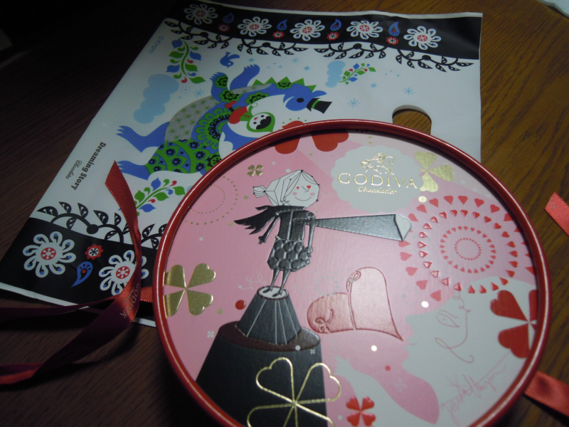 GODIVA!上等だね~。 うちは、彼に日本で小枝のお徳用サイズ買ってきました。 父にはアーモンドチョコ2箱あげてきました。 今、ここで書いてても有り難味なさすぎ感満載。><