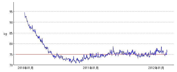 2010年からの体重変化を、画像にしたけど…、 目標を75kgにしてると言う意味で、現状維持は成功してるかな・・・と。