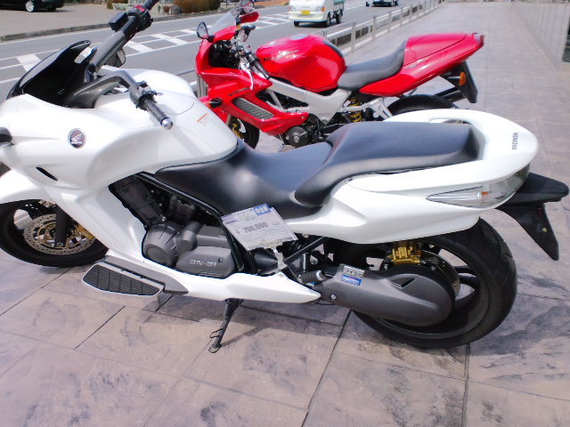 13:00 スクーターのタイヤが前後共 減ってきて危険なので タイヤ交換を何処でしようか 4軒に同じ銘柄のタイヤ交換代を電話で聞いてみたら。 ①松阪のホンダの大きなショップ 17.000円 ②鈴鹿の去年8耐で優勝した大きなショップ 18.300円 ③このスクーターを中古で買い もう一台ビーノを新車で買った中島モータース 24.000円 ④近所の自転車も売ってるお店 20.000円 てなわけで 松阪へ 大きなショップなのでいっぱいホンダのバイクが並んでる。 ウエルカムドリンクもサービス 自販機で好きなのを選び(コーラー大)飲みながら いろんなバイクに跨った 楽しくて待ってる時間が あっという間に過ぎ去った。 実際は16.905円でした。