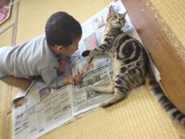 ちょん丸パパ、相変わらずの白髪交じりで、染めないの?ww …なんか小さくなったね。まるでネコ見たいww