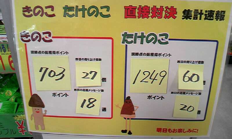 びっくり!そーなのぉ? 私はキノコの山が好きだから、絶対キノコの圧勝だと思ってた。 すごいことを知ってしまった気がする。