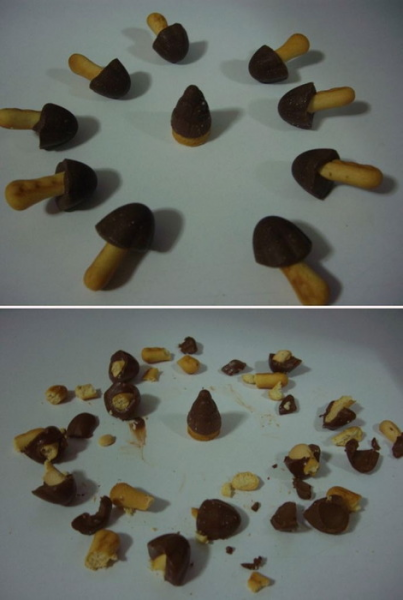 きのこの山って、箱の中でくっついてしめじみたいになってることあるよね。