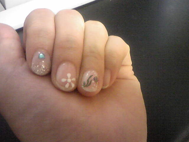 講習会だったので、いろんなことをやってみる・・・ 結果、統一感のない爪の出来上がり~~~~ 夜になってから、全部作り直しましたけど・・・