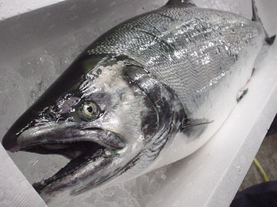 大きさは、川に残った勝ち組のヤマメ3倍近い。写真の面構え、スゲーな。 これ、ホントに同じ種類の魚かよ。海でどんだけ、もまれて生きたんだ。