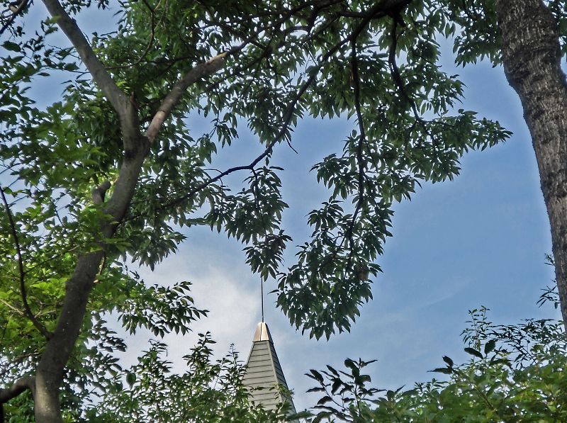 【今日のできごと】 梢越しの尖塔 【今日の感想】 腰に違和感を感じても習い性か、歩かないと一日が始まらない。