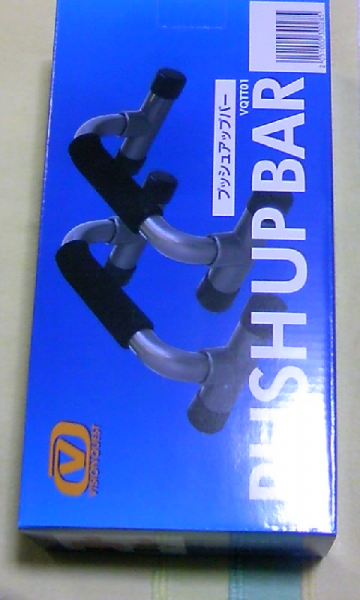[プッシュアップバー] 前々から買いたいと思っていたのですが、いろんなスポーツ洋品店で見て回ってもなかなか見つからなかったのです。 それが昨日、ヒ○ラヤへ行ったらおいてあったのです(嬉) 「見つけたーーー」 早速購入しました。値段もとってもリーズナブルでした・・・♪